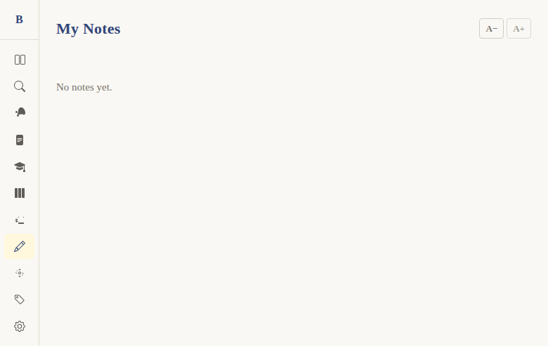 Problem: Users accumulate notes across many chapters and books. They need a way to see all their notes in one place, find specific ones, and navigate back to the passage where they wrote them.